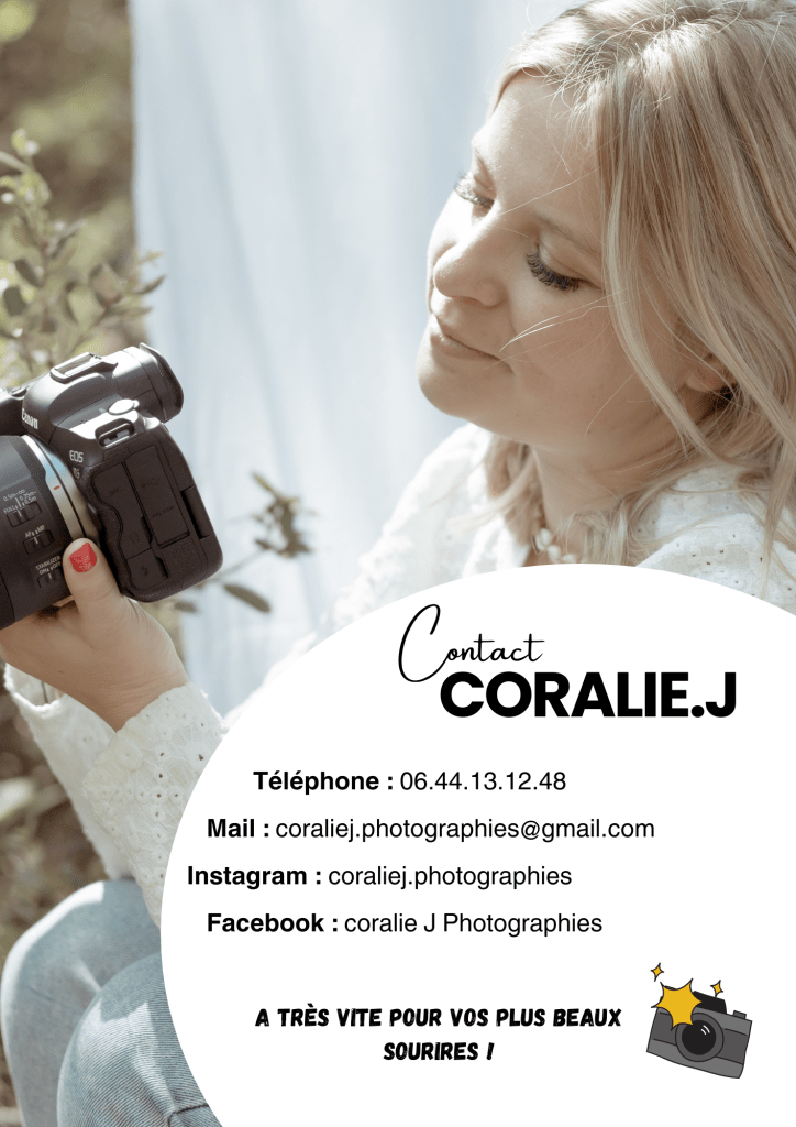 « Shooting photo réalisé avec Coralie J photographies, un super moment accompagnée de cette photographe talentueuse professionnelle patiente et passionnée. Grâce à son talent nous avons de magnifiques photos et souvenirs. Je ne peux que vous la recommander : jovial sympathique et très professionnelle. »